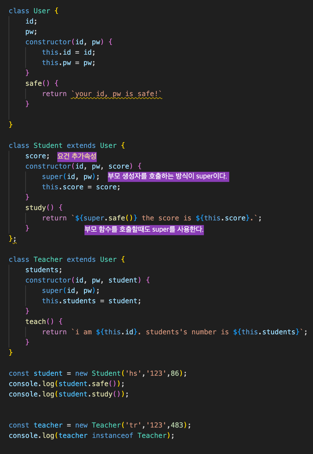 자식은 상속받을때 extends라고 손을 뻗어야 부모로부터 상속받을 수 있다.