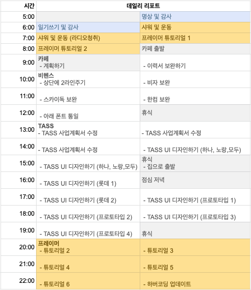 주요 일정의 우선순위를 정하고 대략적인 소요시간을 정한다.