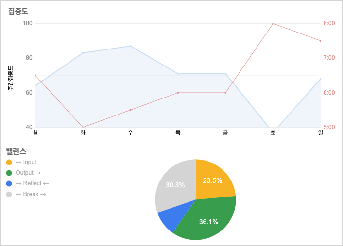 4. 그래프를 통해 인풋이 많은지 아웃풋이 많은지 확인할 수 있다.