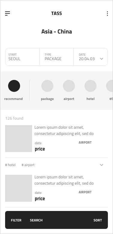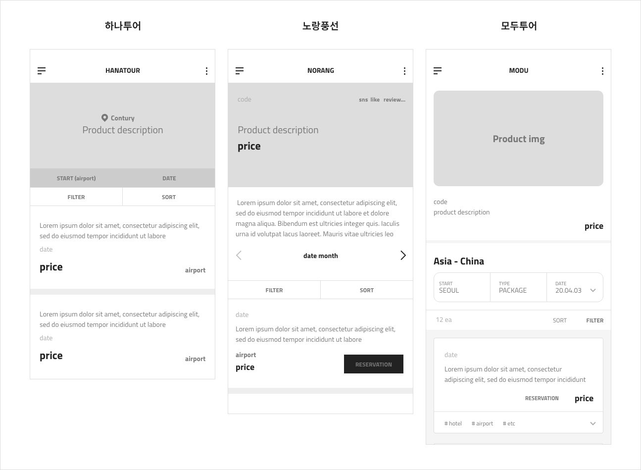 - 필수요소 : 목적지 선택, 출발 날짜 및 기간, 항공 선택 등 제품을 선택하는데 있어서 꼭 필요한 UI