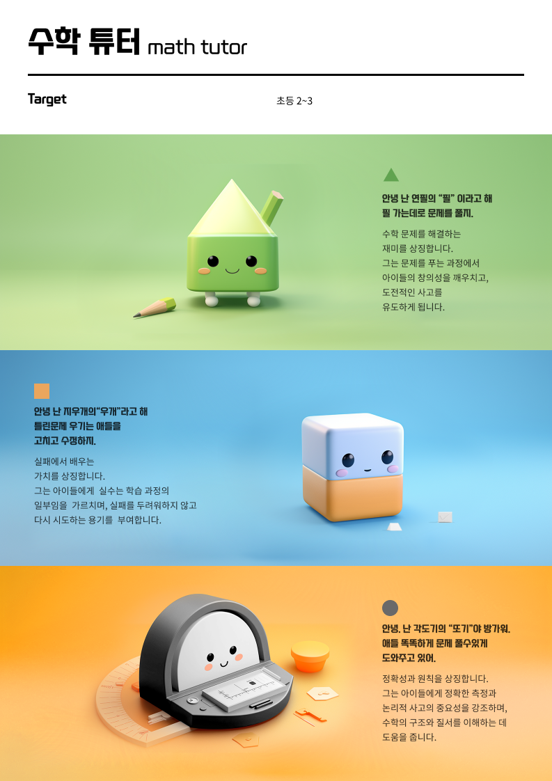 소마사고력 수학의 캐릭터디자인을 미드저니를 활용해 만들어봤다.